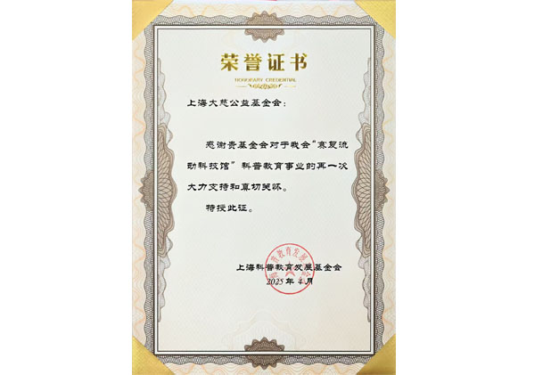 2025年 上海科普教育发展基金会 荣誉证书