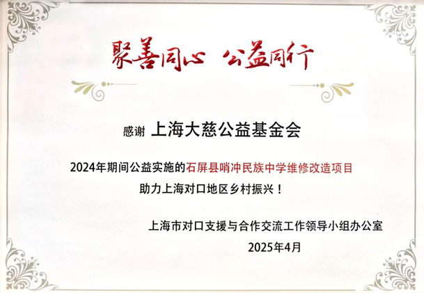 2025年 上海市对口支援与合作交流工作领导小组办公室 荣誉证书