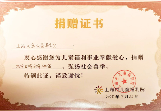 2025年 上海市儿童福利院 荣誉证书