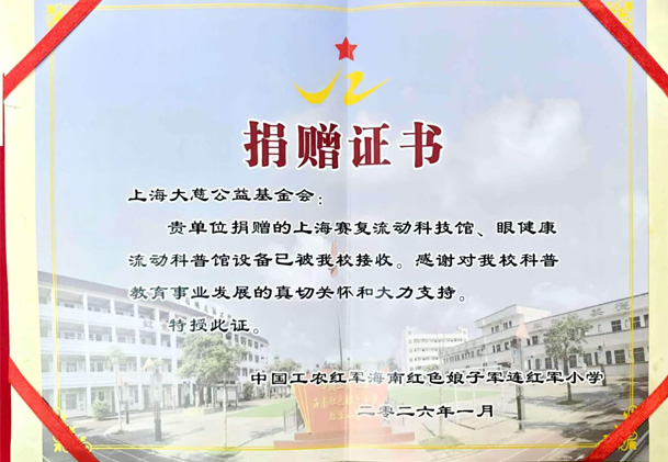 2026年 中国工农红军海南红色娘子军连红小学 捐赠证书