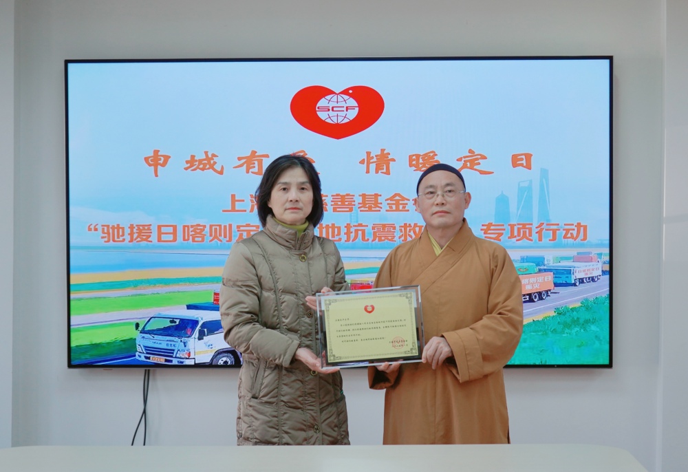 1月8日上午,上海龙华古寺、上海大慈公益基金会向上海市慈善基金会捐赠1082025元善款,定向支持上海市慈善基金会开展的“驰援日喀则定日等地抗震救灾”专项行动,善款将用于地震灾区的民众救助和灾后重建。